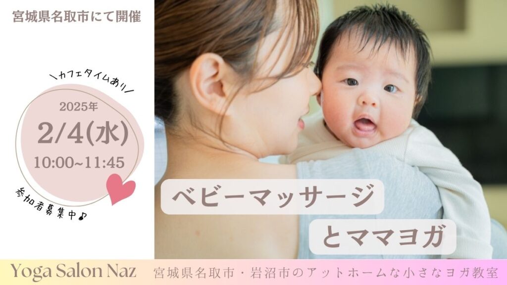 2月4日(水)に開催する【ベビーマッサージ&ママヨガクラス】のご案内です😊